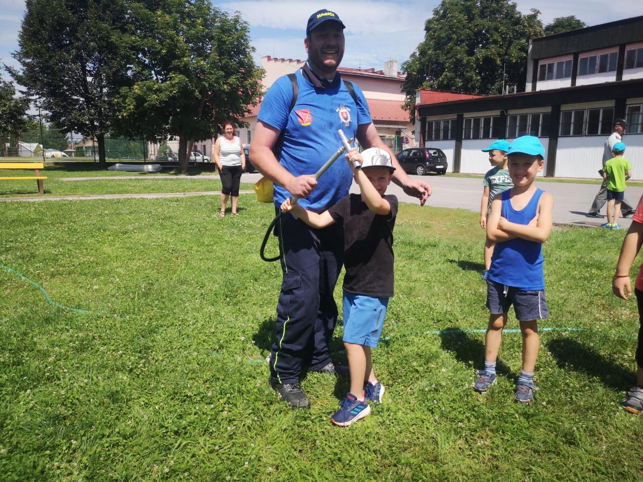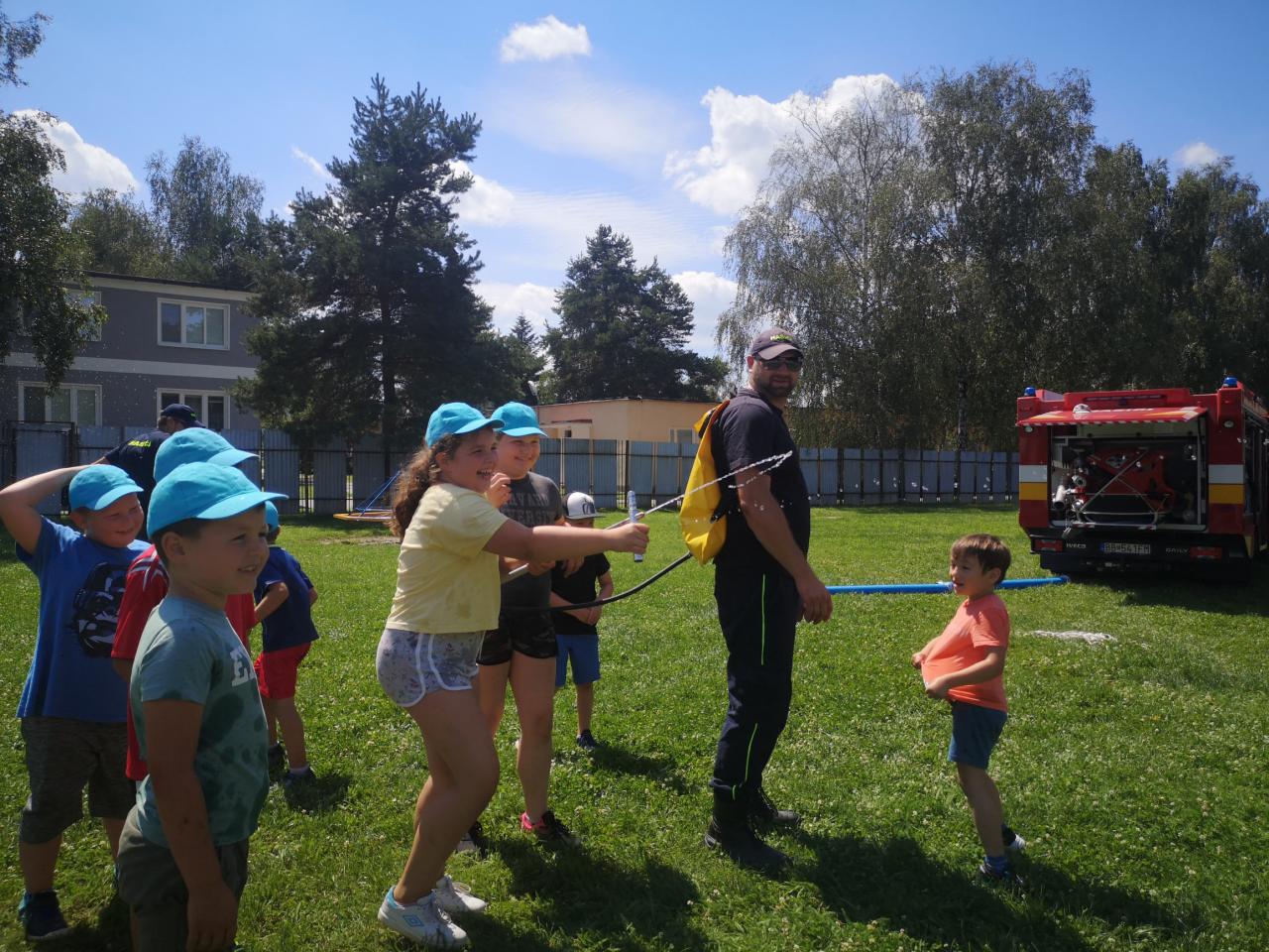 Členovia DHZO pripravili na posledný deň športového tábora pekné prekvapenie. Az önkéntes tűzoltók a sporttábor utolsó napjára egy szép meglepetést készítettek.