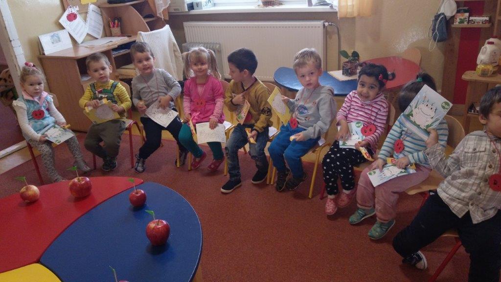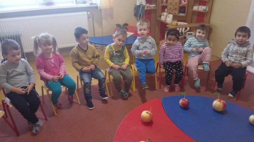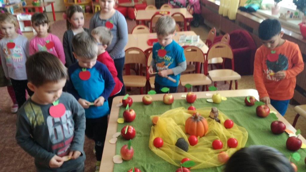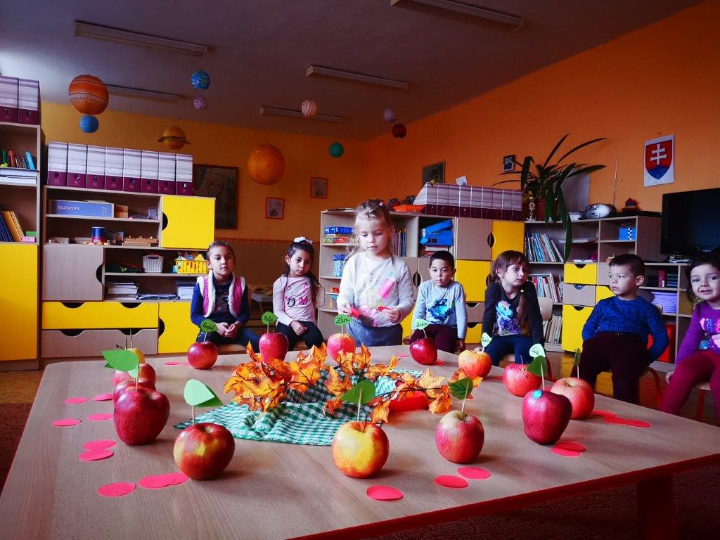 Aby sa na toto výborné ovocie nezabudlo, pripomenuli sme si ho rôznym spôsobom. Na úvod sa deti pochválili svojimi krásnymi jabĺčkami, ktoré doniesli z domu. Od rána sa zapojili do rôznych aktivít, kreslili, lepili z papiera jablká, mali ochutnávku, pripravili výstavu v prezliekarni a zároveň hlasovali o najkrajšie jabĺčko. Naším cieľom bolo nenásilným a hravým spôsobom podporovať u detí konzumáciu ovocia.