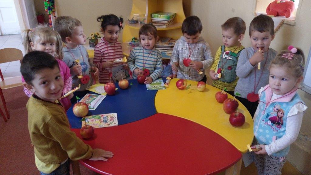Almáktól illatozott óvodánk 2019.11.20-án. Ezt a napot e szép, zamatos, őszi gy mölcs ünneplésére szántuk, annak érdekében, hogy ez a kitűnő gyümölcs ne merüljön feledésbe. különbözőképp használtuk fel a nap folyamán. Bevezetésként a gyerekek áradoztak gyönyörű almáikról, melyet mindenki otthonról hozott. Kora reggeltől különböző aktivitásokba kapcsolódtak be, ahol papírból almát nyírtak, ragasztottak, kóstoltak, kiállítást szerveztünk az öltözőben és végül szavaztak a legszebb almára. Célunk az volt, hogy játékos módon megszerettessük és növeljük a gyümölcs fogyasztását. A gyerekek az Alma-napon lelkesek voltak, hisz torkoskodni egészségesen is lehet.