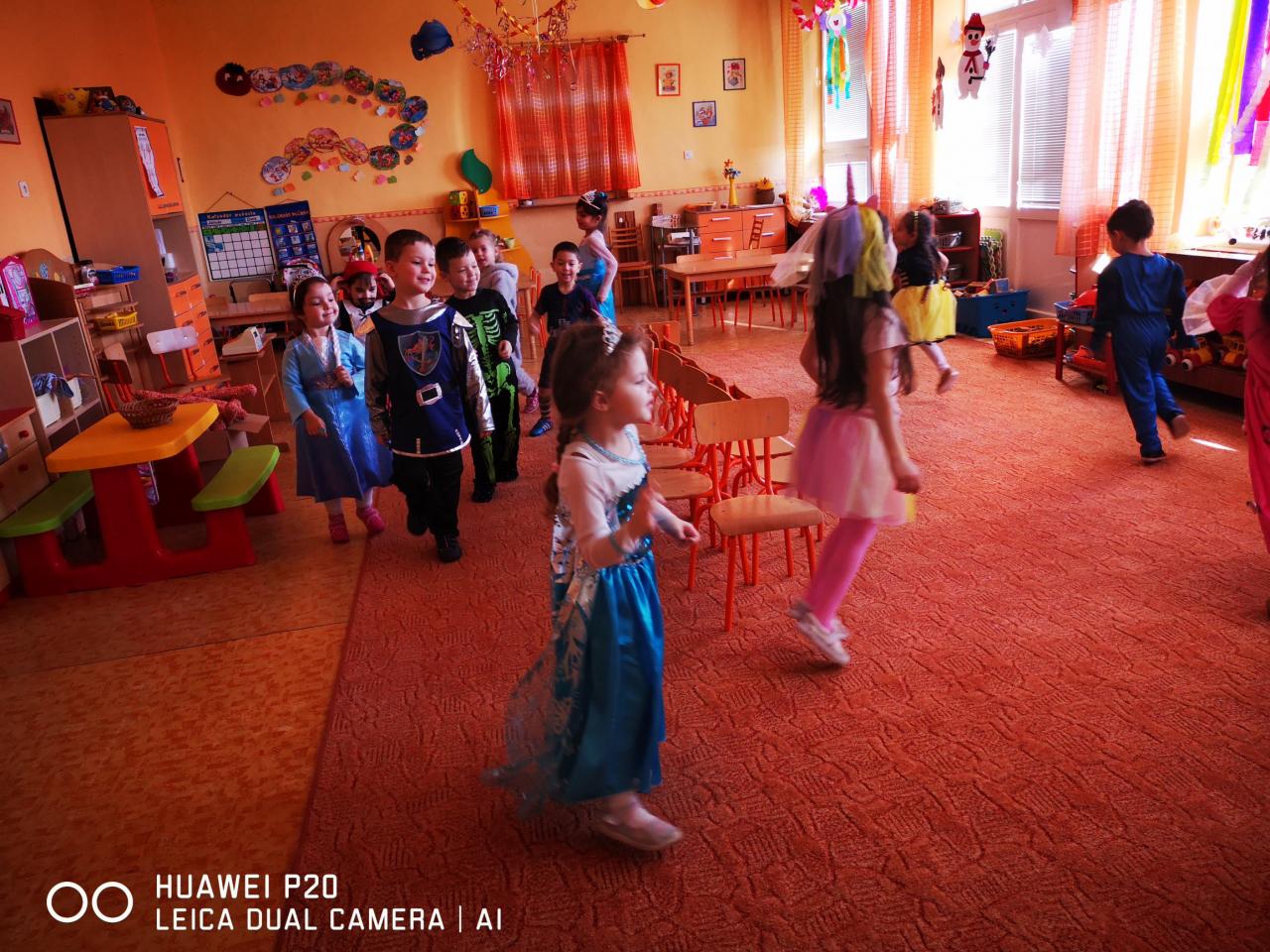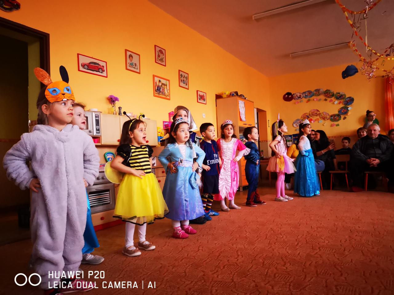 Milyen volna a farsang, farsangi mulatság nélkül? Természetesnek tűnt számunkra, hogy az idén is megrendezésre kerüljön a maszkabált az óvodában. Az egész hét farsangi hangulatban telt el. Az osztályokat színes léggömbökkel és girlandokkal díszítettük, maskarákat színeztünk és a gyerekekkel együtt versekből és dalokból álló rövid programmal készültünk a nagy napra. Február 6.-án, az egész óvoda meseországgá változott, melyben szinte minden mesehős képviseltette magát – hercegnők, királynők, varázslók, kalózok, de a mesebeli állatok és lények is megjelentek. Az óvoda megtelt jókedvvel, zenével és tánccal. A délutáni órákban meglátogattak bennünket a szülők és bekapcsolódtak a mulatságba, ahol vidám perceket éltünk át együtt. Minden jelmez jutalma ajándék és Kinder tojás volt, de az igazi jutalom, a gyermekek csillogó tekintete, a jó hangulat és a szép élmény, mely örökre megmarad.