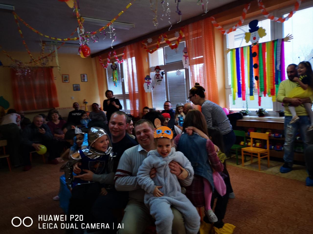 No akéže by to boli fašiangy bez poriadnej fašiangovej zábavy? Preto sme deťom v škôlke organizovali fašiangový karneval. Karnevalom sme žili celý týždeň. Učiteľky s deťmi pripravili program z básničiek a pesničiek, zároveň zhotovovali rôzne škrabošky, ozdoby, triedu sme vyzdobili pestrofarebnými girlandami, balónmi. Až konečne prišiel deň 6. februára, keď sa celá materská škola premenila na rozprávkovú krajinu, v ktorej sa stretli takmer všetky rozprávkové bytosti – princezničky, kráľovné, čarodejníci, piráti, ale i zvieratká. Škôlka ožila veselou hudbou. Deti prezlečené do originálnych masiek tancovali, súťažili. V popoludňajších hodinách nás navštívili aj rodičia a zapojili sme ich do zábavy a prežili sme spolu veselé chvíle. Každá maska bola odmenená Kinder vajíčkom s prekvapením, no najkrajšou odmenou boli rozžiarené detské očká, radosť, dobrá nálada a pekný zážitok, na ktorý budú dlho spomínať.