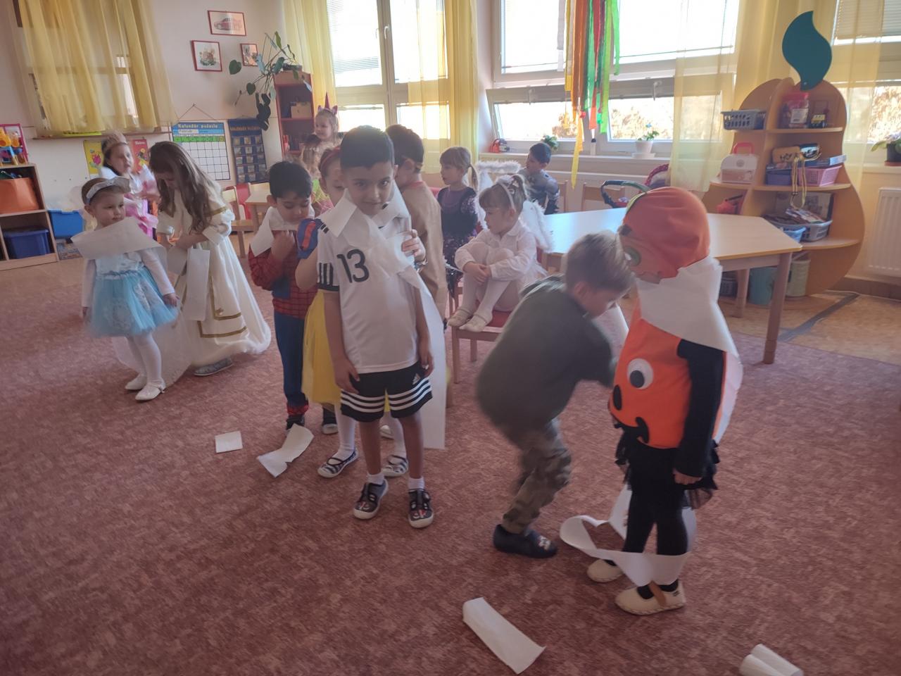 Pani učiteľky pripravili pre deti veselé karnevalové dopoludnie. Vo vyzdobenej triede si všetci po obdivovali navzájom masky, s kamarátmi si zasúťažili, ťahali si tombolu a aktívne sa zapojili do rôznych zábavných hier. Tety kuchárky pripravili pre deti fašiangové šišky, na ktorých si všetci pochutnali. Spolu sme sa radovali, boli šťastní a veselí, veď bol to predsa fašiangový karneval. Napokon bola každá maska odmenená malým darčekom. Takto veselo sme sa lúčili so zimou v našej MŠ.
