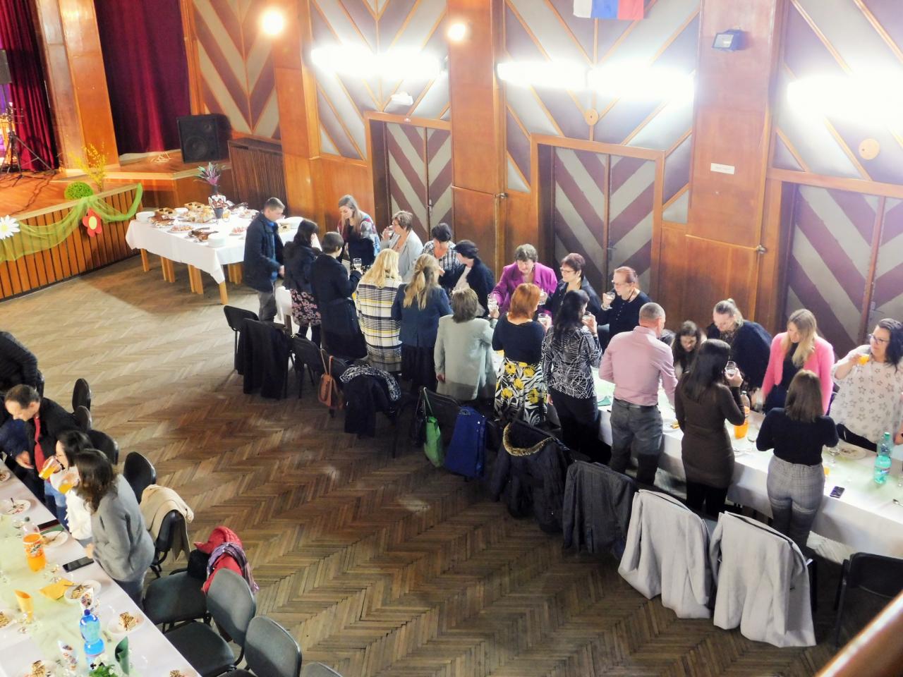 Zúčastnili sa ho učitelia zo všetkých našich škôl, ktorým sa prihovoril pán starosta Gabriel Mihályi. Poďakoval pedagógom za ich obetavú a náročnú prácu s našimi deťmi, za dobrú spoluprácu a zapájanie sa do života obce. Vyzdvihol aj neľahké stránky dištančného vzdelávania, kde boli konfrontovaní s novými podmienkami vyučovania a museli si všetci osvojiť nové pojmy ako home office, virtuálna výuka, dištančné vzdelávanie a iné.