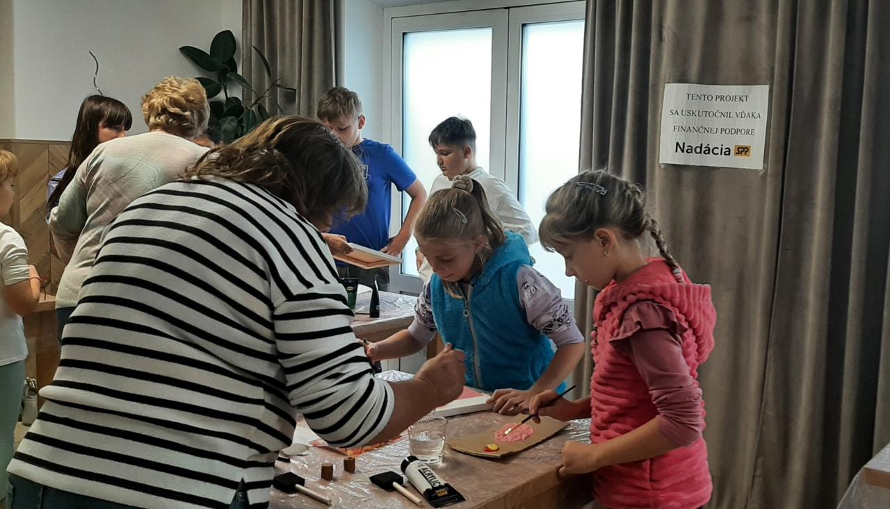 Veľmi pekným momentom bolo aj spoločné maľovanie na plátno – obraz štyroch ročných období. Tento motív sme nevybrali náhodne. Niesol v sebe hlboký symbolický význam: