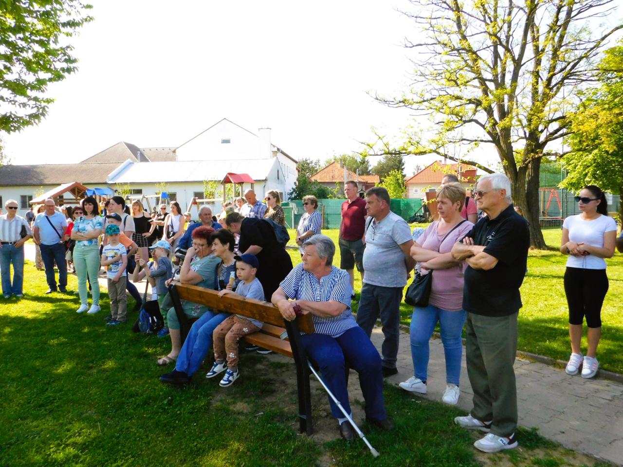 Idén április 30-án, kedden az új játszótér területén sokan gyülekeztek erre a szép eseményre, ezáltal is emlékezve a régi helyi szokásokra. A résztvevőket szlovákul Borbášová Mária, a Művelődési Központ munkatársa, magyarul Csobó Zsuzsanna önkormányzati képviselő köszöntötte, akik röviden ismertették a májusfa állításának hagyományát.